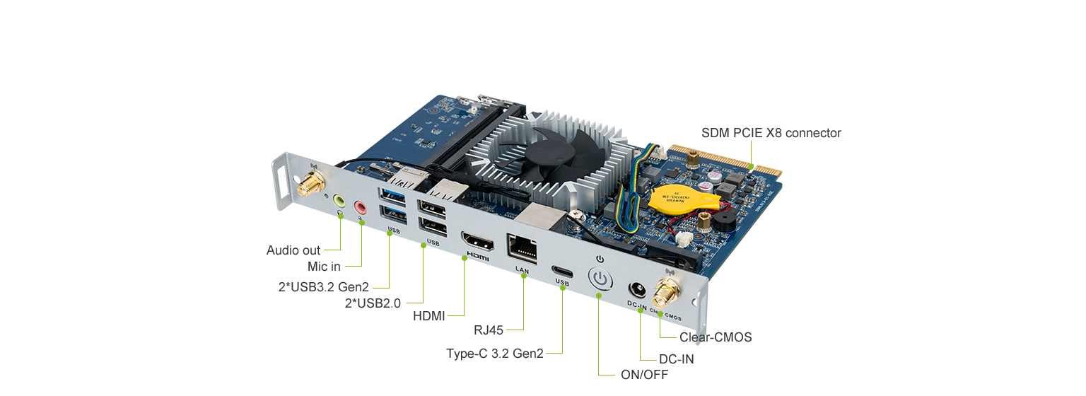 优秀的视频显示,乐鱼科技SDM-L613拥有1个HDMI (7680 x 4320 @60 Hz)接口,支持60HZ刷新率,实现8k超清显示,SDM(PCIE X8)可以传输 HDMI2.0 (4096 x 2304 @60 Hz)、DP1.2 (4096 x 2304 @60 Hz)、USB3.2 Gen1、UART、GSPI、I2C、PCIe 和 SYS_FAN 信号连接。