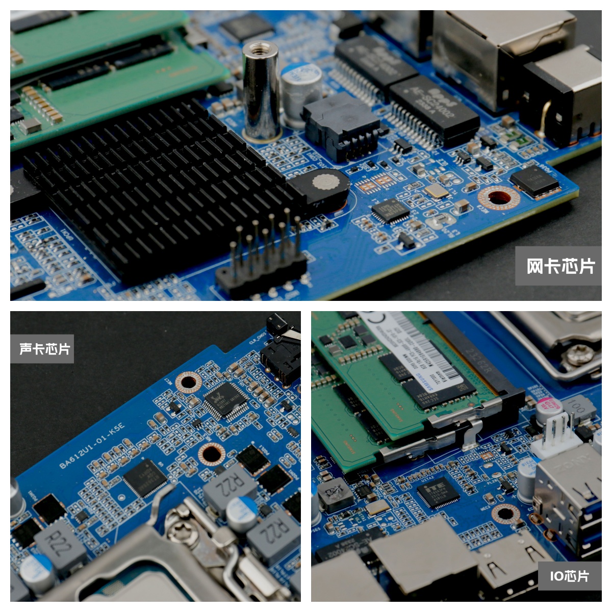 乐鱼桌面云终端Y-BOX P3主板采用的是6相供电,为H610入门级芯片组,CPU附近都分布了相关的芯片,在千兆网口附近有2个网卡芯片RTL 8111H,在主板背面的音频接口附近可以看到1个经典的“小螃蟹”ALC897 声卡芯片,声卡芯片附近有一个I/0 芯片ITE8613E-LX。