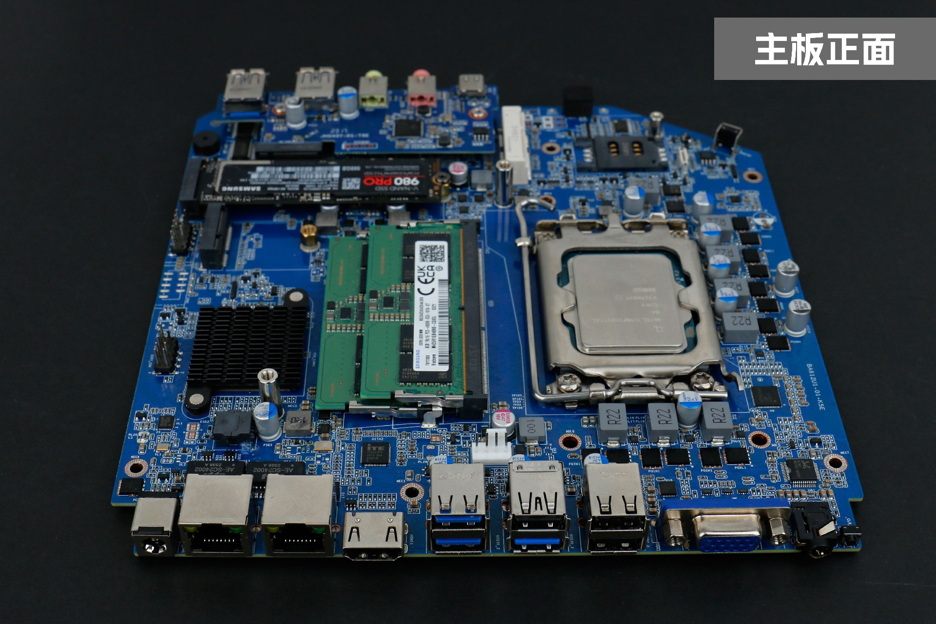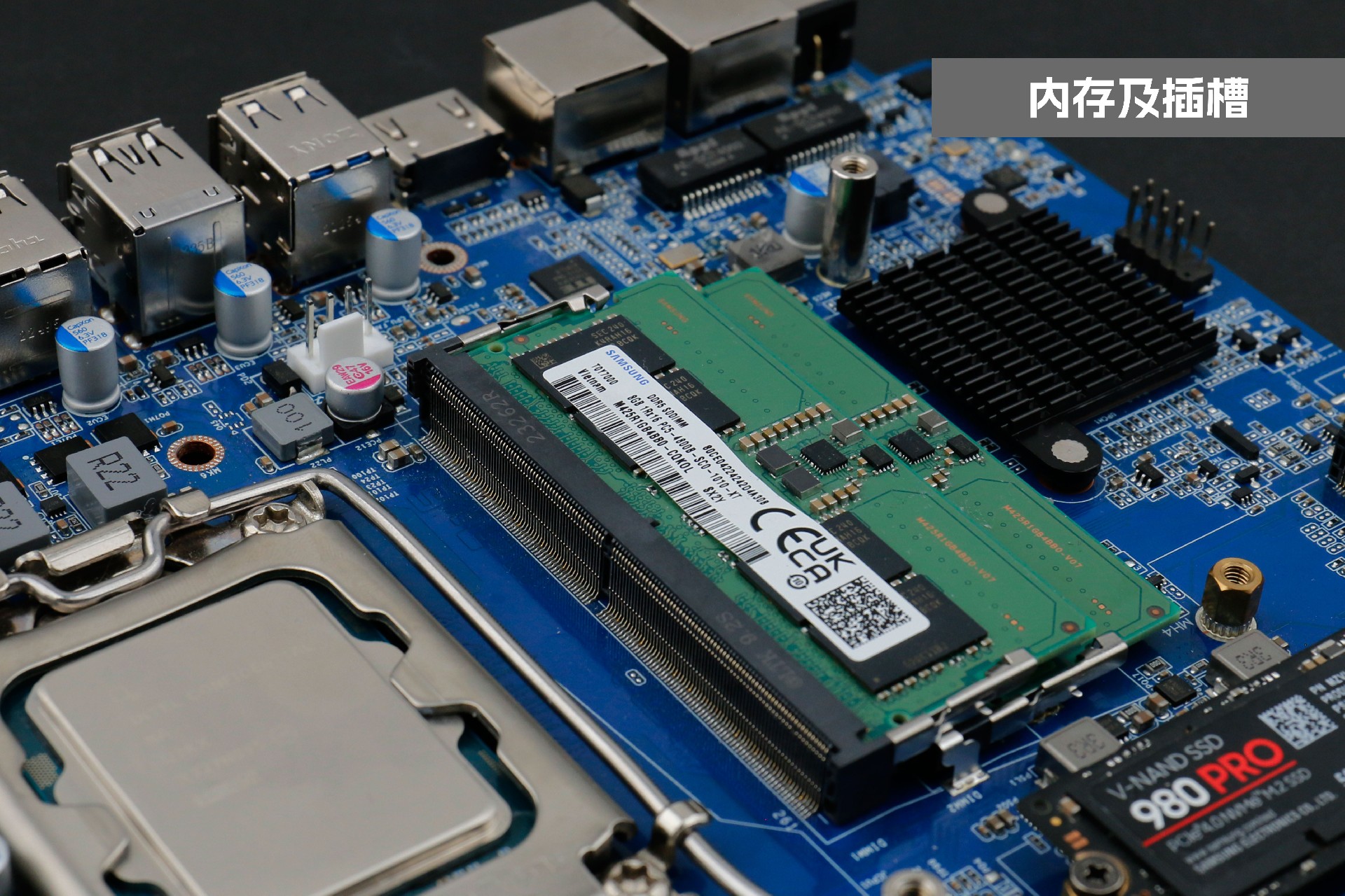 乐鱼桌面云终端Y-BOX P3主板中部是内存插槽,采用双通道笔记本内存槽设计,最大支持容量可达64GB,最高支持DDR5-5600MHz频率,比 DDR4 至高标准数据速度 3200MT/S多传输 1.75 倍,横插的形式可以减少主板的占用体积,使整体机身更紧凑,内存顶部的风扇起到高效散热的作用。