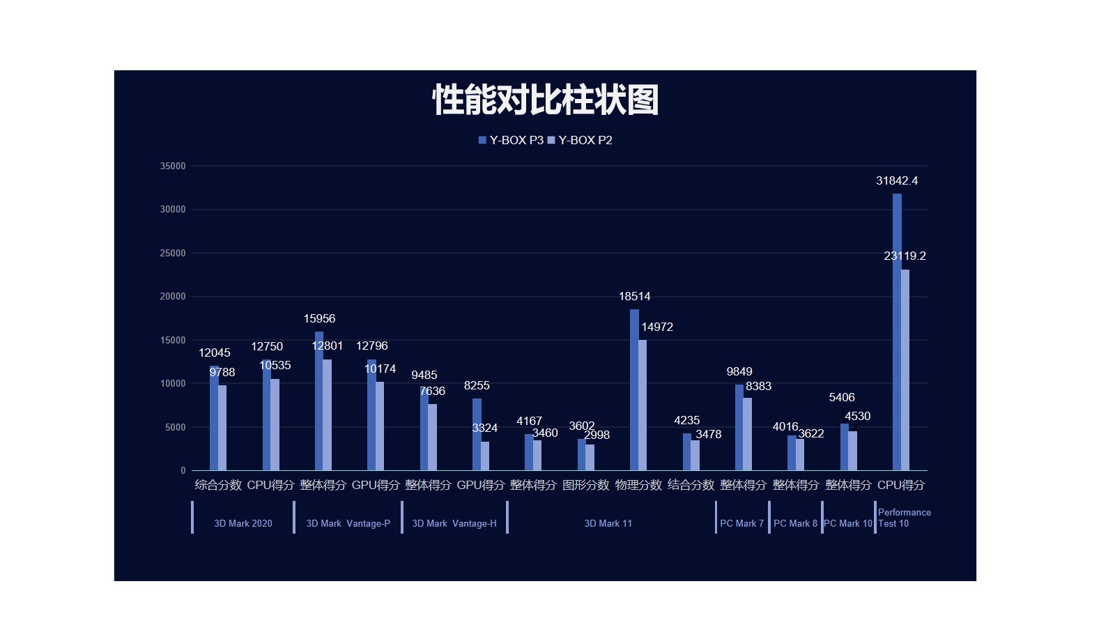 乐鱼来具体看看各个测试项目的跑分情况,乐鱼分别用3D Mark、PC Mark以及Performance 10等不同系列不同软件进行跑分,测试项目涵盖显示性能测试、系统性能测试、CPU性能测试等。通过下面的表格及柱状图可以看出,乐鱼桌面云终端Y-BOX P3的数据在各项性能上都得到了大幅度提升。